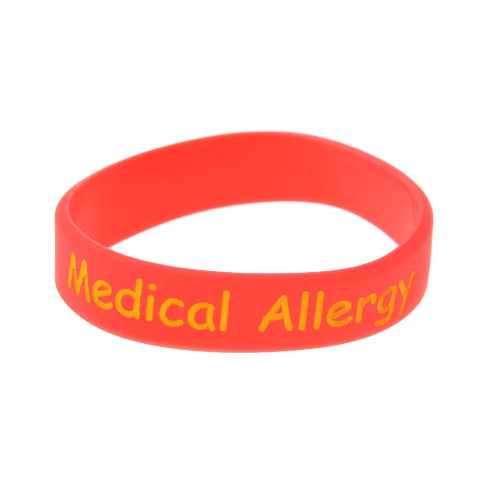 On sale 1PC Subsection Color Nut Allergy Silicone Rubber Bracelet with Medical Symbol Youth Size