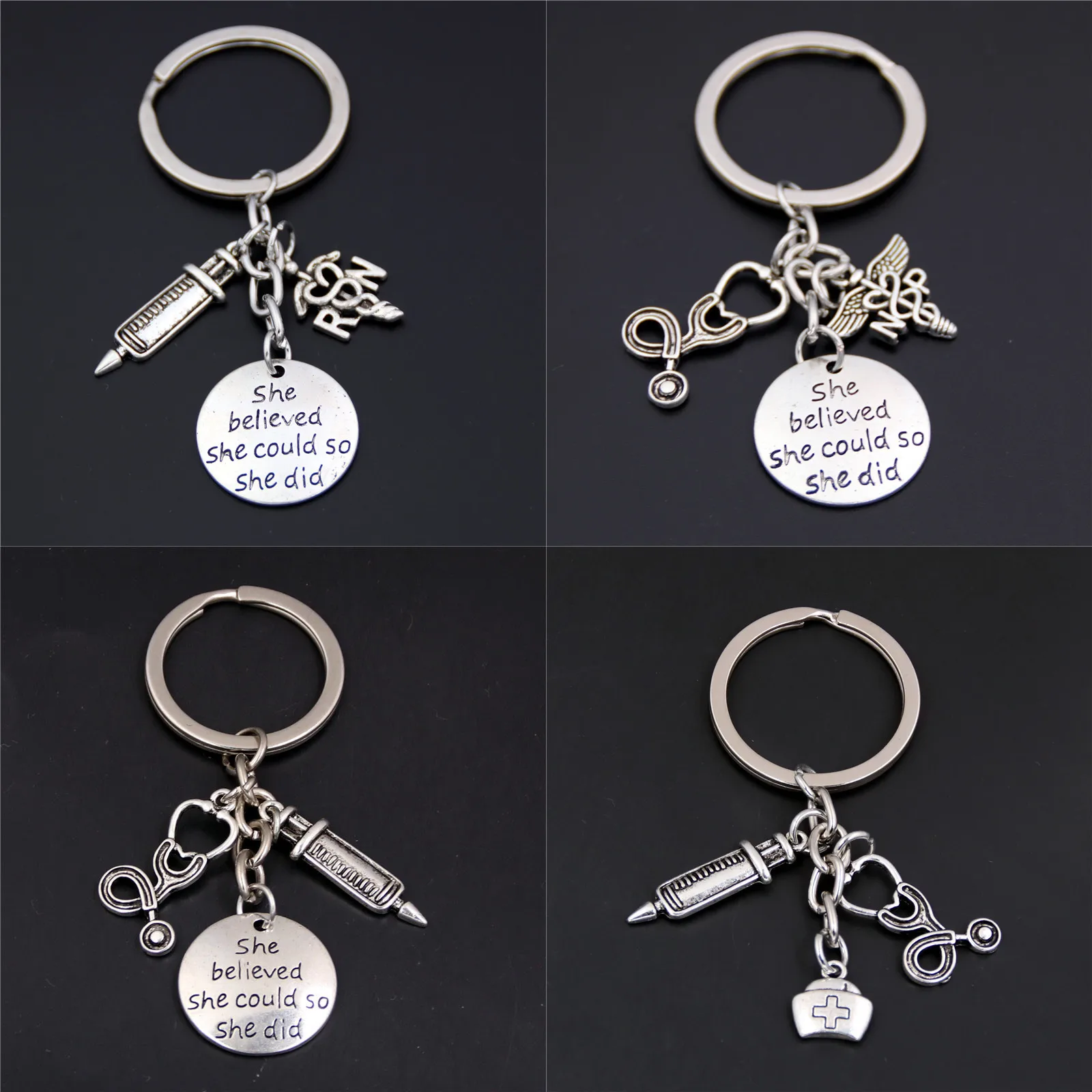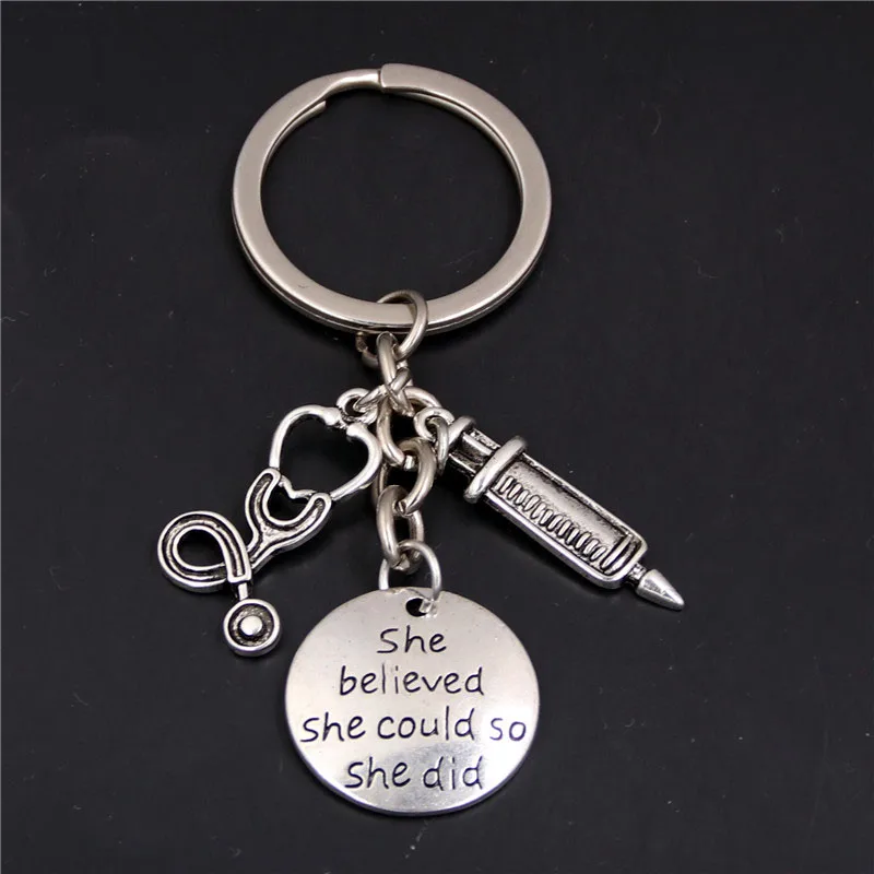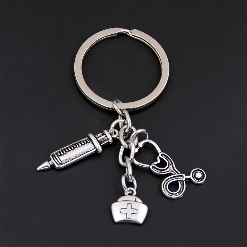 - 1Pc Syringe Stethoscope Keychain Medical Nurse Cap Charms Keyholder Creative Classmate Graduation Gift Jewelry Handcrafts E2595