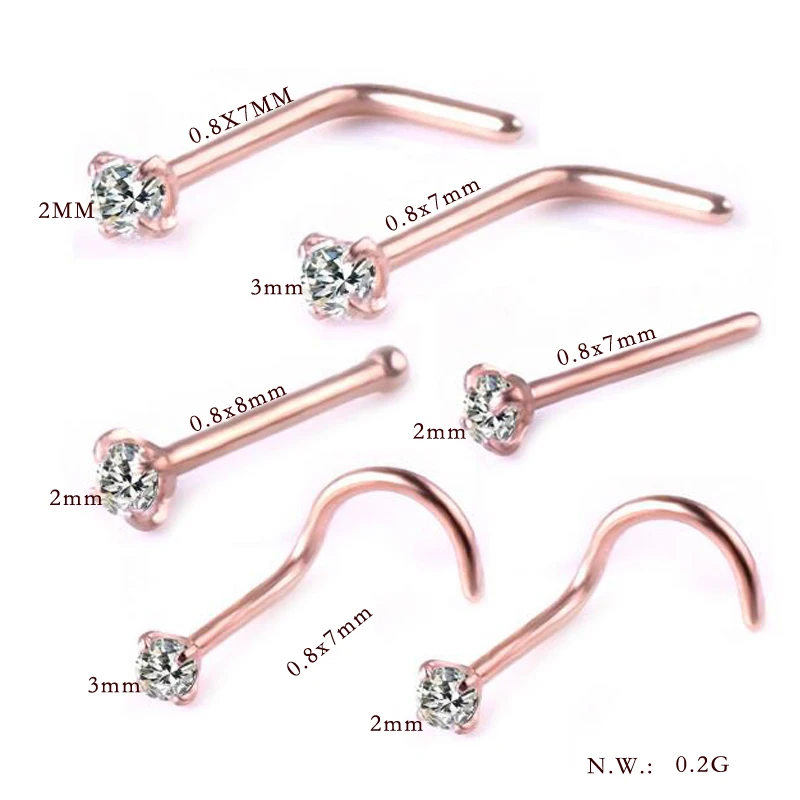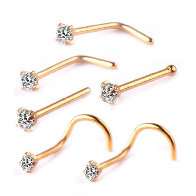 Premium 2020 new 316L medical stainless steel nose ring 6 Piece high-quality zircon nose nail body jewelry