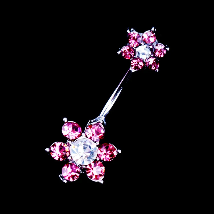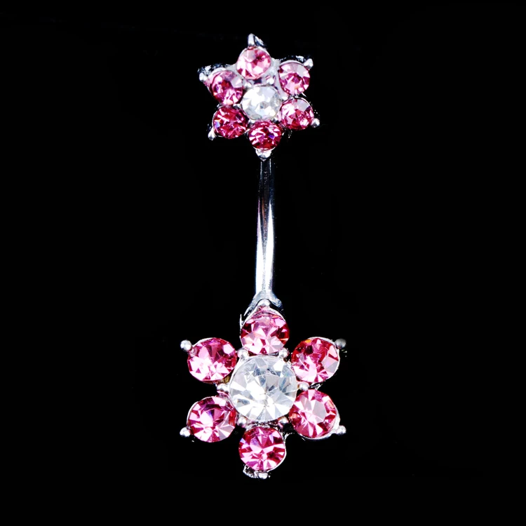 Offer New Arrival Flower Rhinestone Piercing Medical Steel Fashion Navel Belly Button Rings Umbilical Nai