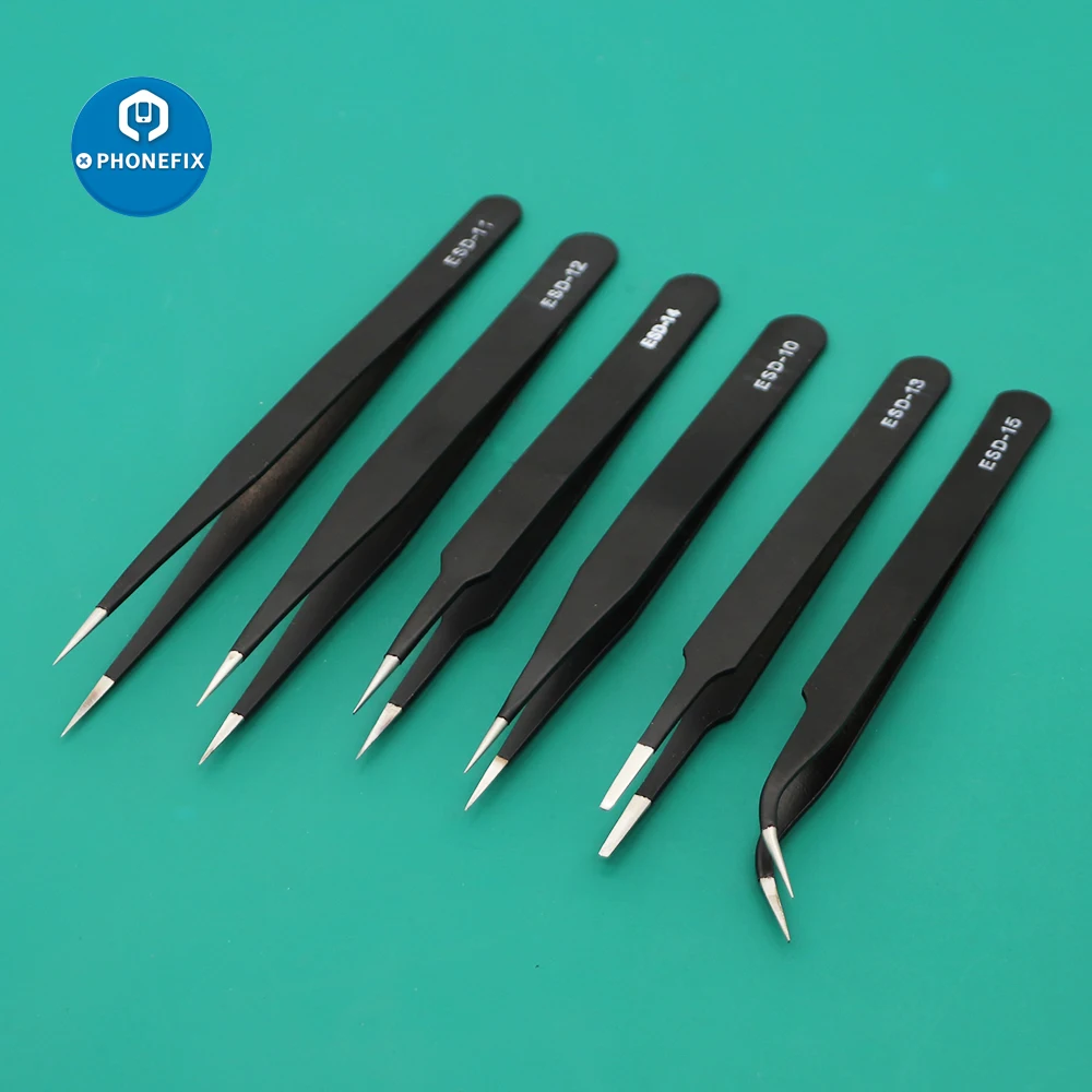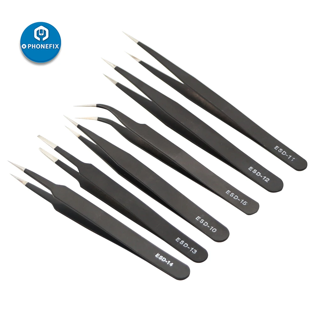 - PHONEFIX 2pcs/lot Precision Anti-static Tweezers Set with Fine Tips Stainless Steel ESD Tweezer Electronics Repair Tools